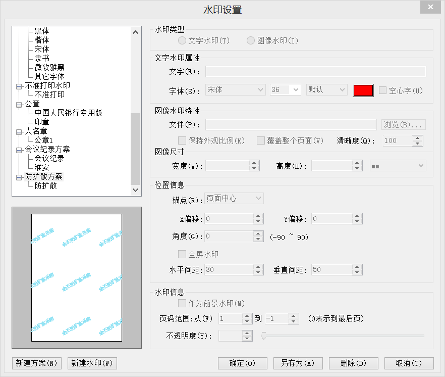 - 图像水印支持设置保持比例、覆盖全部页面、图像清晰度、自定义图像大小。